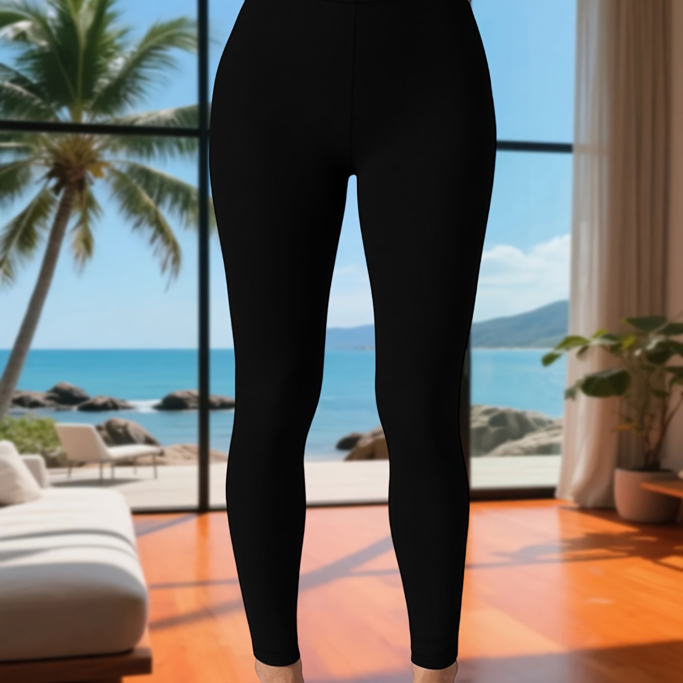 TEMU 특별 개발. 사계절 활용 가능한 블랙 시어 레깅스, 편안한 분위기로 세련된 룩 완성