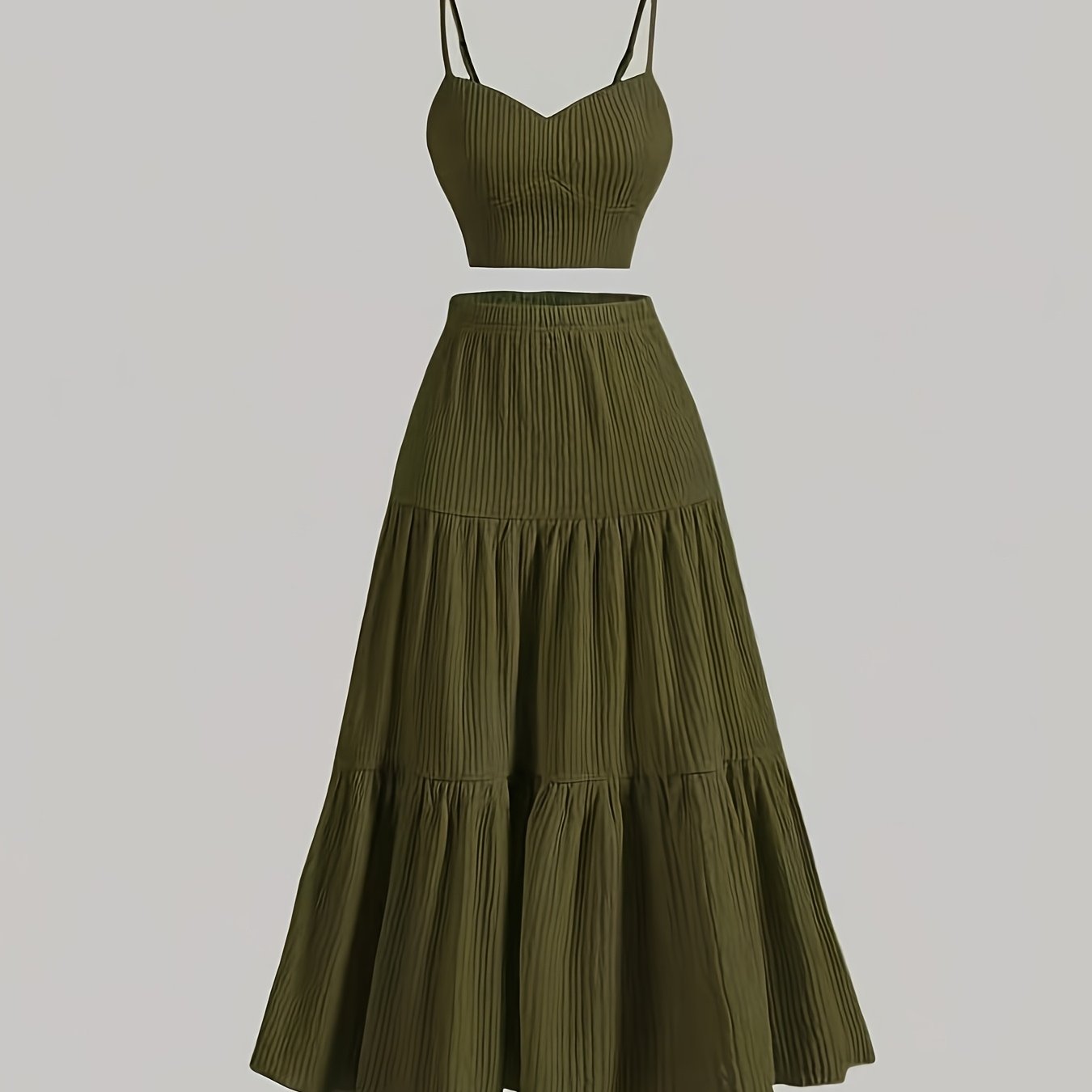 TEMU 여성용 캐주얼 솔리드 컬러, 슬림핏 스트랩리스 바디스와 벨라인 헴 A라인 스커트 세트