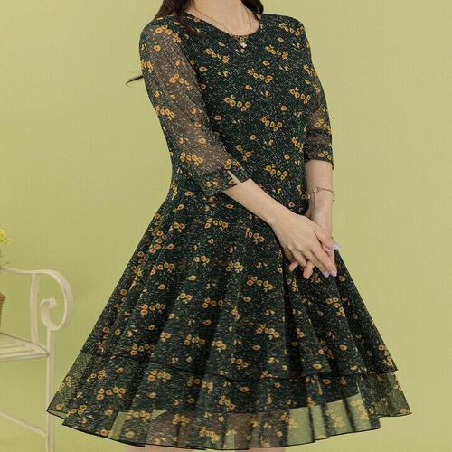 엄마옷 원피스 롱 쉬폰 잔꽃 프릴 603BNM070 중년여성/50대/60대/마담/빅사이즈/할머니옷