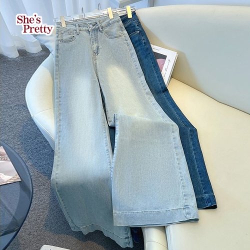 [드리다]여자 봄 가을 돌청 빅사이즈 밴딩 와이드 데님 팬츠 40대 미시 캐주얼
