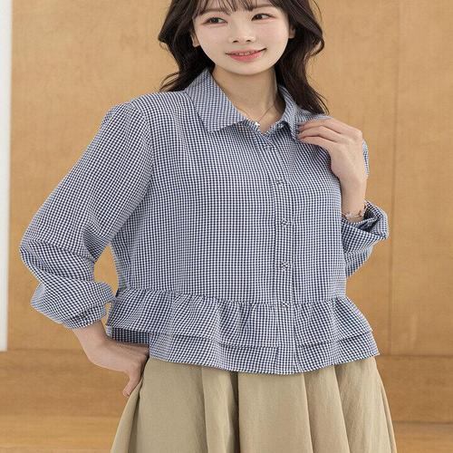 [디얼마미]웰라 프릴 체크 블라우스 /마담 미시 중년 여성 빅사이즈 40대 50대