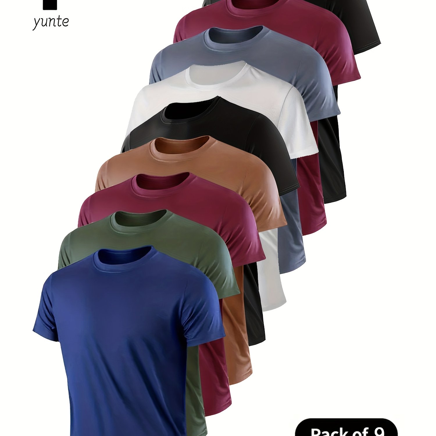 TEMU 네이비 블루, 아미 그린, 버건디, 카키, 블랙, 화이트, 그레이, 버건디, 블랙 혼합 세트 9개입 - 초경량 남성용 크루넥 티셔츠 - 피트니스, 헬스장, 달리기용 속건성, 통기성, 흡습성 셔츠, 가볍고 편안한 스포츠 및 피트니스 훈련용 속건성 반팔 흡습성 셔츠