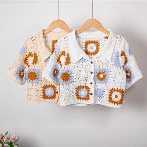 슈팅스타 / 카라넥 뜨개짜임 모티브 크롭 숏 셔츠