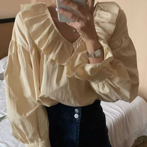 슈팅스타 / 브이넥 프릴 카라넥 루즈핏 퍼프소매 블라우스 979953