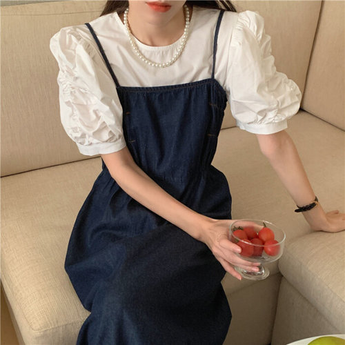 슈팅스타 / 슬링 주름 구김 퍼프소매 라운드 화이트 블라우스