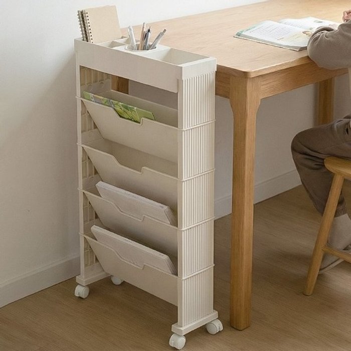 북카트 틈새 활용 5단 이동식 북 트롤리 바퀴달린책꽂이