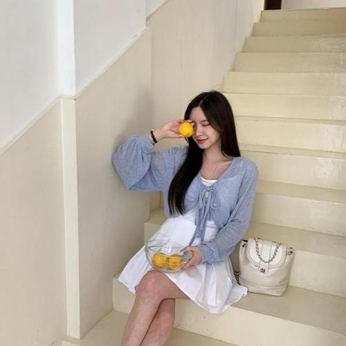 [다잇템][다잇템] 여자 롱슬리브 골지 린넨혼방 가슴끈 V넥 페미닌 가디건_24739416_588872