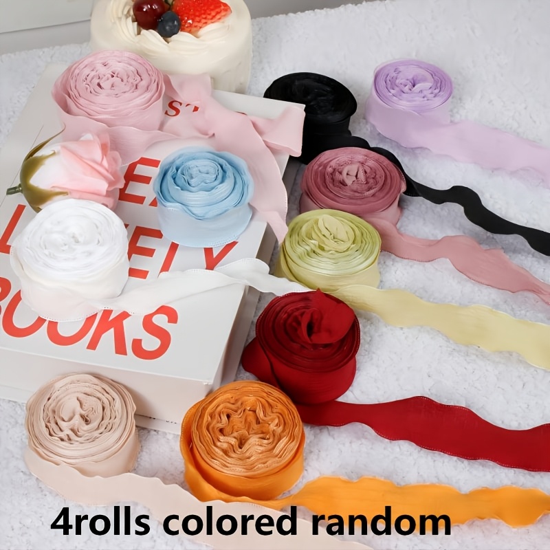 TEMU 4롤, 각 롤당 40야드, 핸드메이드 엣지의 쉬폰 리본, 웨딩 초대장, 선물 포장, 생일 축하, 신부 부케 장식에 적합