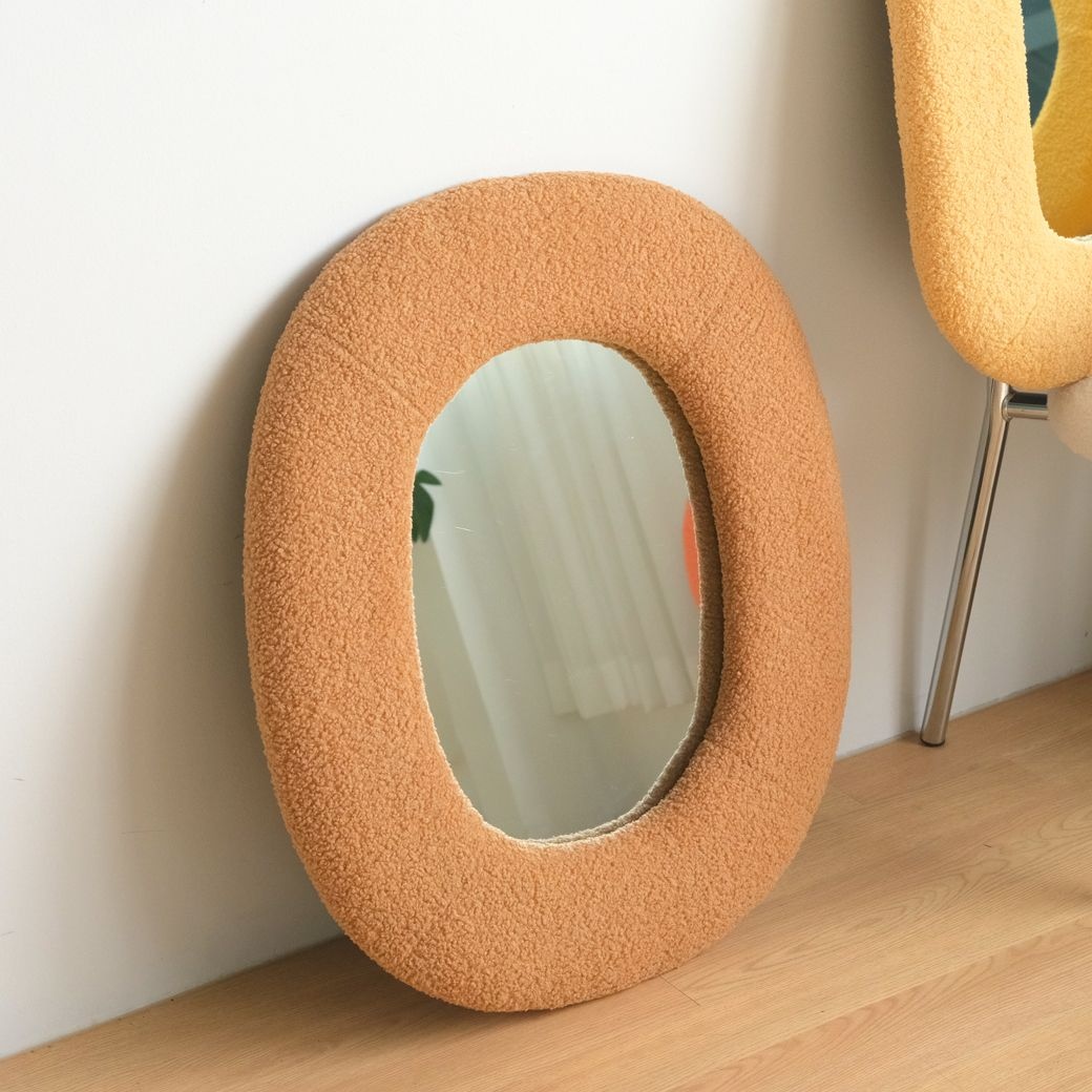 [리퍼] 타원 부클레 벽걸이 인테리어거울 브라운
