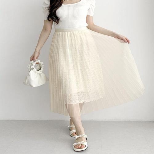 [하젤]사이퍼 레이스안감 플리츠 롱샤스커트_M4700