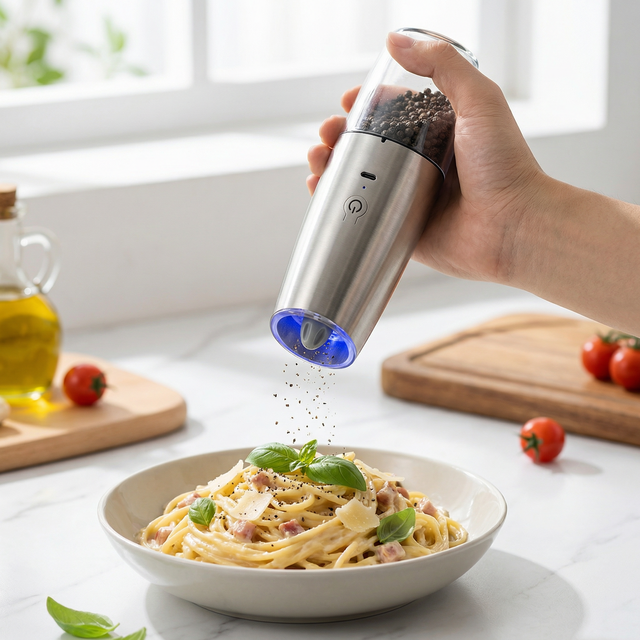 그라인더 주방용품 자동 후추 세라믹 칼날 LED 일자형