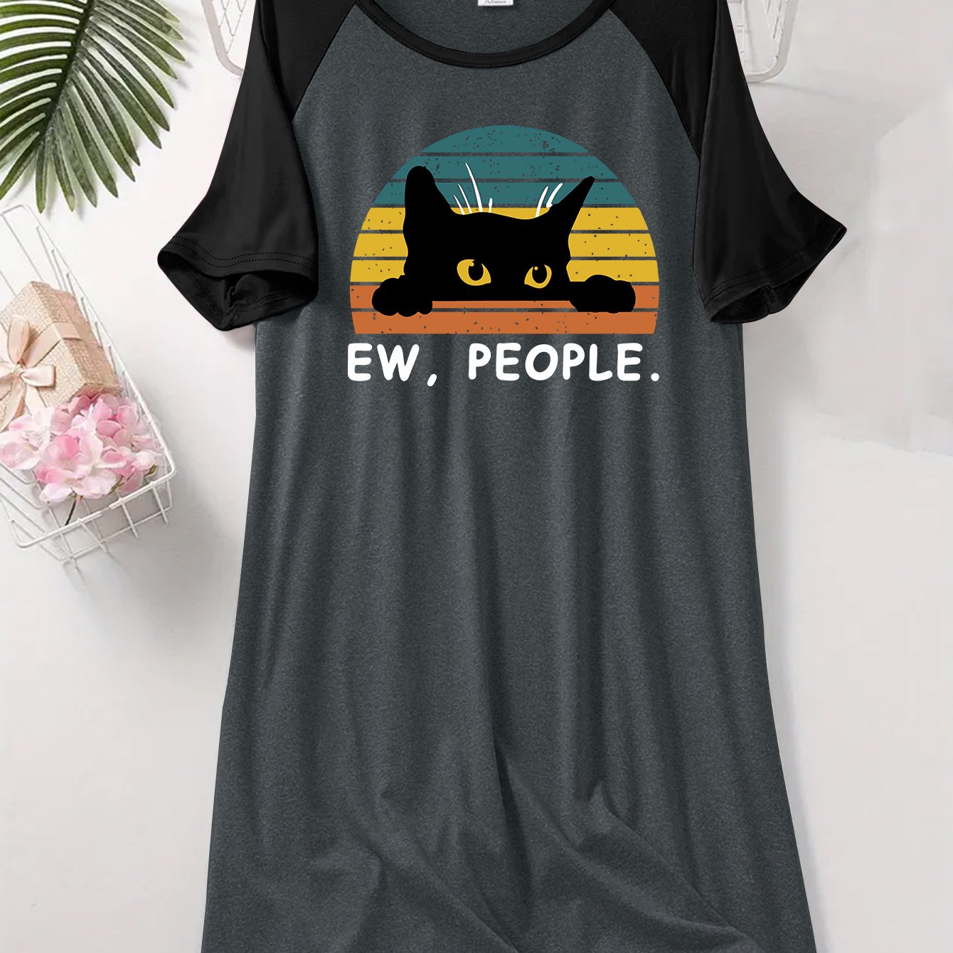 TEMU 레터 프린트 래글런 슬리브 나이트가운, 라운드넥 숏 슬리브 캐주얼 여성 드레스 E21