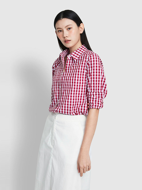 [자주 라이프웨어] [JAJU/자주] 여 포플린 체크 셔츠_라이트 레드