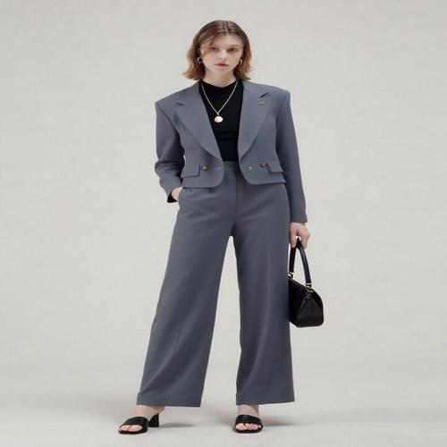 2025년 여성 신상 패션 디자인 입체 컷 하이 칼라 슬림 수트 재킷 & 캐주얼 바지 세트