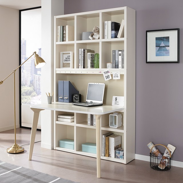 화이트 전면책상 전면 서재책상 책꽂이 고급 공부용