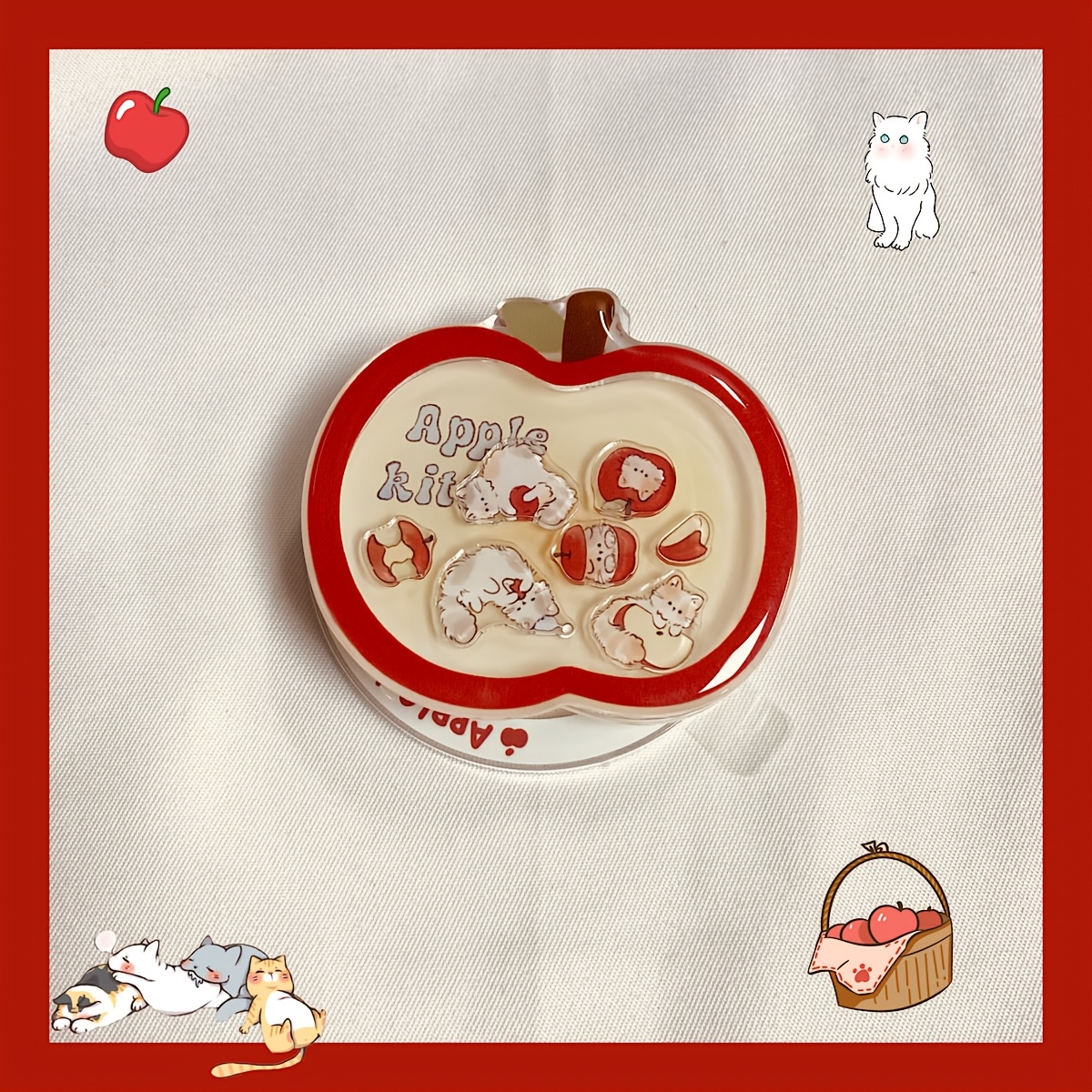 TEMU 사과 고양이 귀여운 흔들리는 마그네틱 흡착 스탠드, 휴대폰 부착 호환, 탁상용 레이지 스탠드