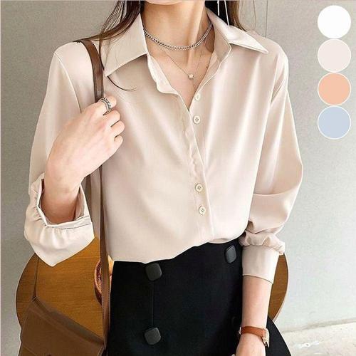 여성 새틴 셔츠 긴팔 블라우스 정장상의 샤이닝 남방