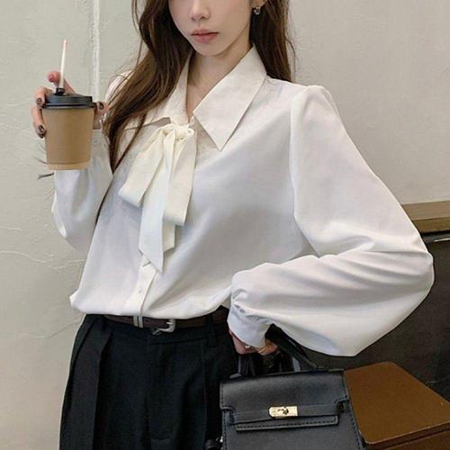 [오너클랜]인기상품 새틴 리본 포인트 여성 오피스 정장 봄가을 하객 블라우스 [WFLHZHO_260227]