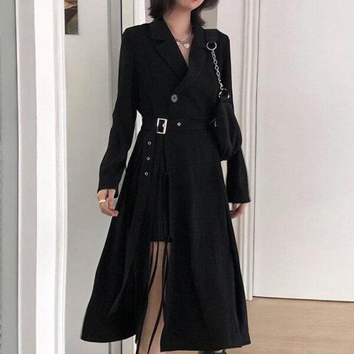 [굿쇼핑몰_의류]페미닌 클래식 벨트 슬릿 제복 미니 롱 원피스