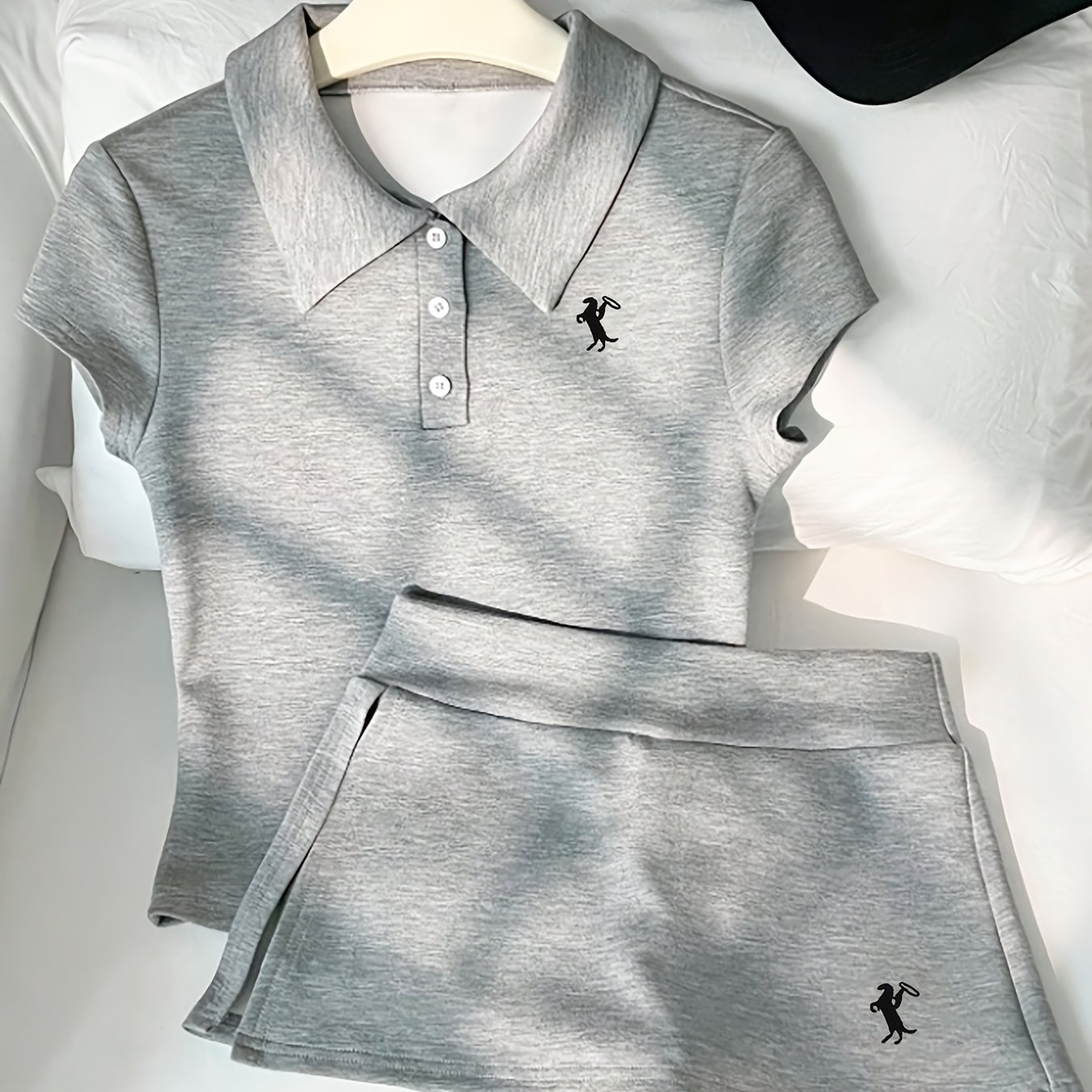 TEMU 여성용 자수 상의와 캐주얼 반바지 스커트 세트