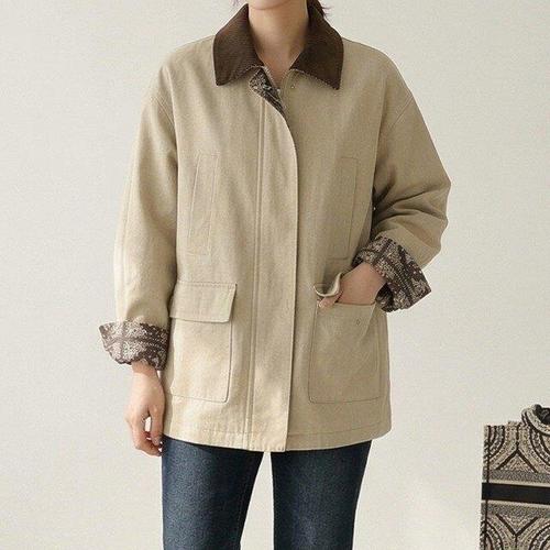 [핑크엘리제]레트로 배색 패치워크 바람막이 제티아나자켓