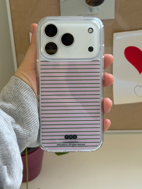 [필위드러브] [+맥세이프] 젤리 하드 폰케이스 - Slim Stripe(pink&brown)
