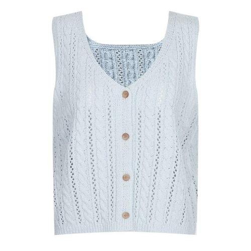 [샵앤]국산 여성 Y단추 오픈 꽈배기 뜨개 펀칭 니트 조끼 BOM-WVS-21208-소라