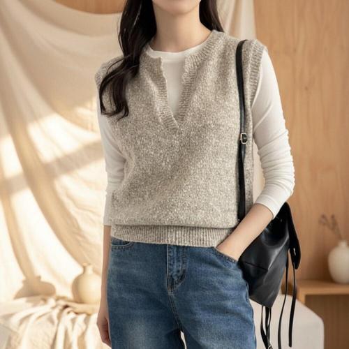 [다잇템][다잇템] 여성 V넥 빅사이즈 가을겨울 스웨터 베스트_24581984_588872