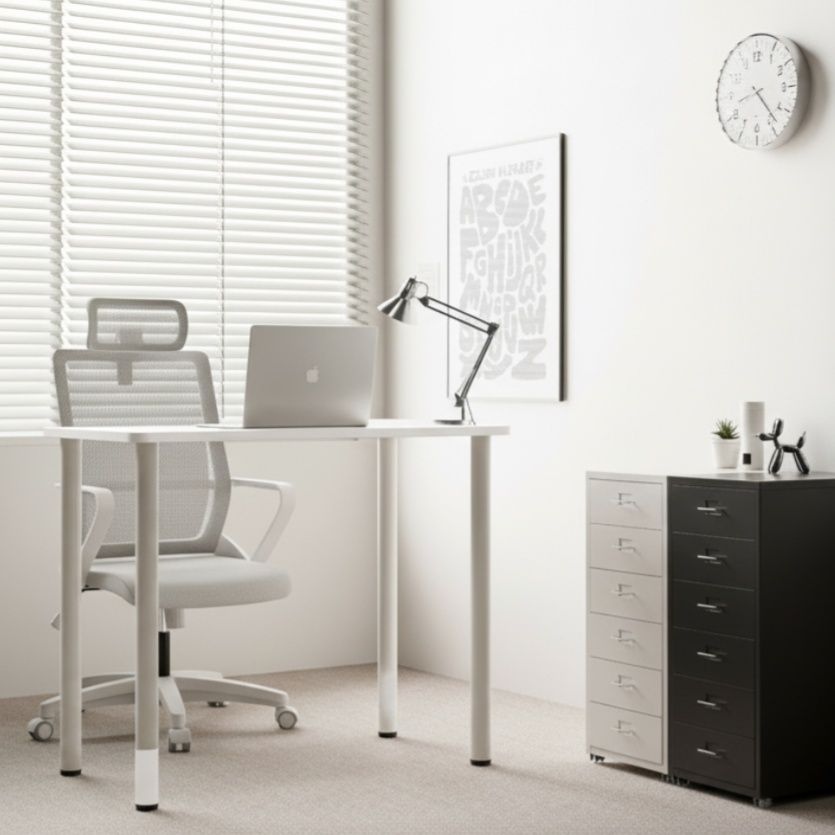 사무용 사이드 책상 600 x 600 깔끔한 조립식 화이트 스틸 사무실 노트북 보조 책상