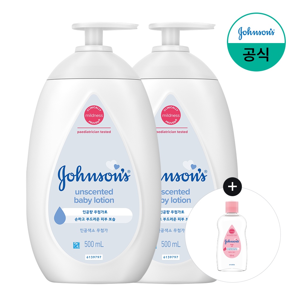 존슨즈 화이트 로션 500ml, 2개+증정 ( 베이비오일 125ml , 1개 )