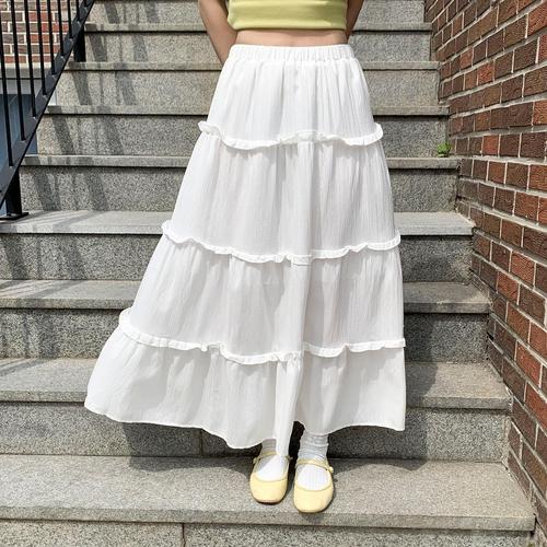[시크블랙]케주미 주름 프릴 캉캉 밴딩 롱 스커트