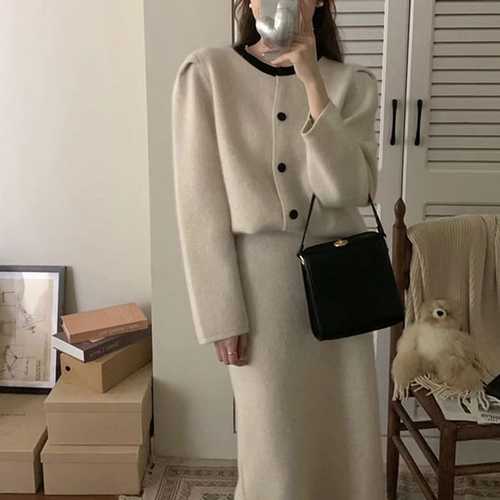 [다잇템][다잇템] 여자 주름치마 코지 카디건 클래식 세트_24548775_588872