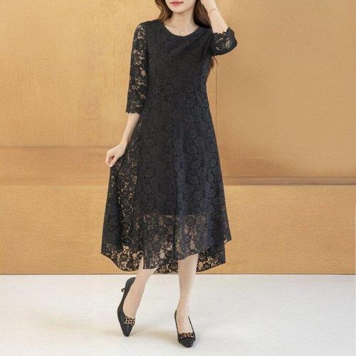 중년 여성 롱 원피스 여성 봄 가을 긴 원피스 7부 소매 무릎 아래 엄마 드레스 JXH