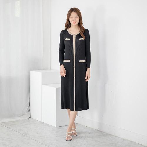 엄마옷 원피스 플리츠 7부 롱 배색 604BNM047 중년여성/50대/60대/마담/빅사이즈/할머니옷