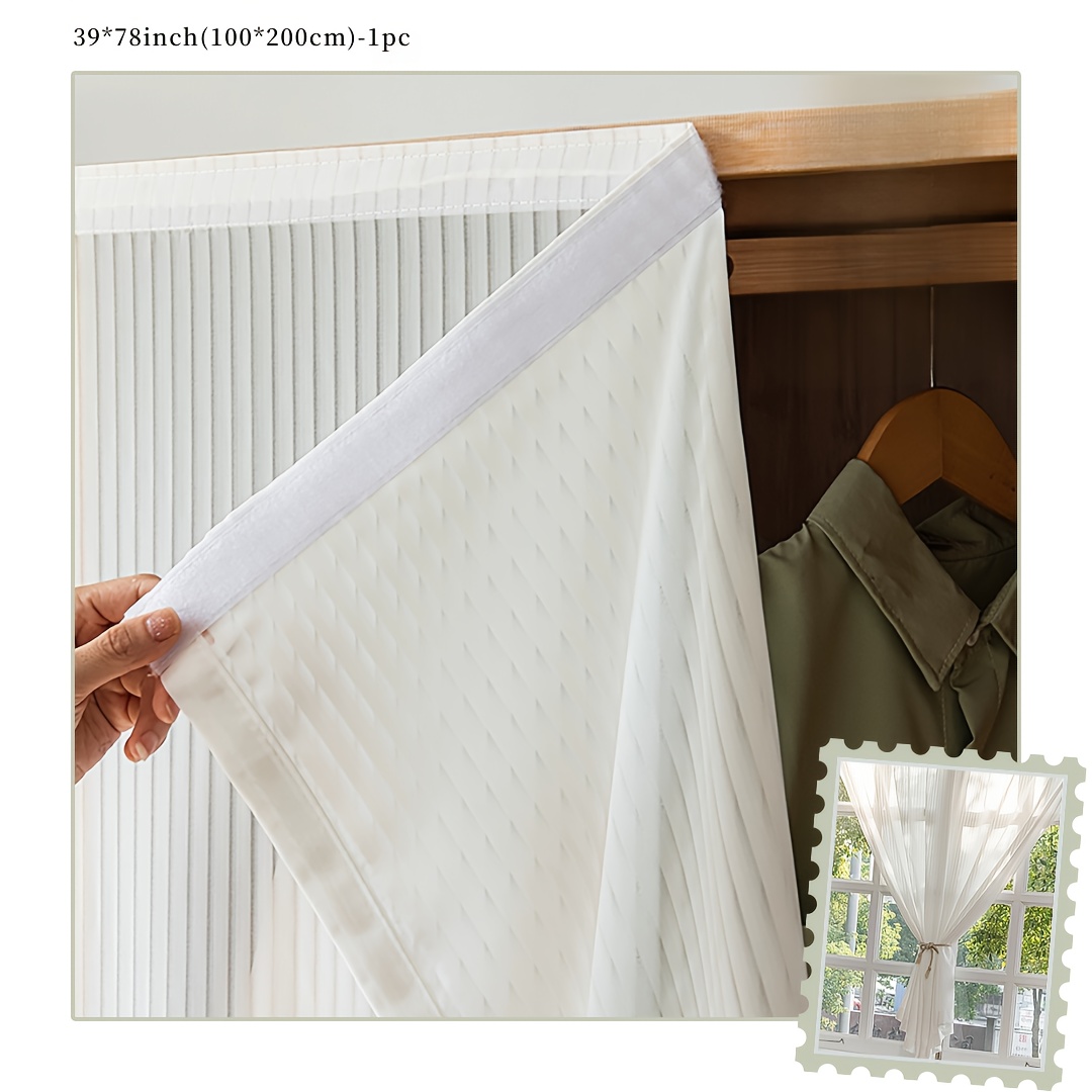 TEMU 드릴 없이 자가 점착식 창문 커튼 - 거실 및 침실용 탈착식 짧은 쉬어 커튼, 매직 테이프 포함, 빛 필터링 프라이버시 스크린, 모던 농가 스타일 장식 (1팩 128Gsm 반투명 원단)