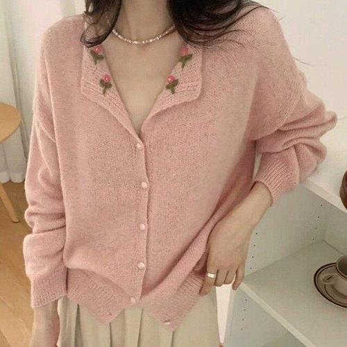 [핑크엘리제]플라워자수 루즈핏 여리핏 지노지아니트가디건