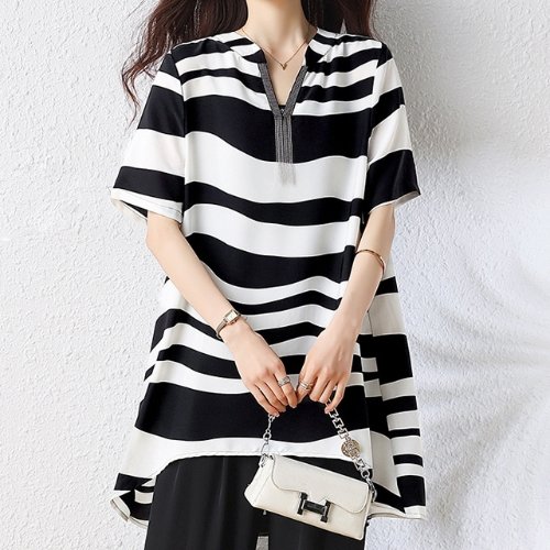 [블랙퀸] 금속태슬 지브라 99까지 롱 블라우스 blk004638