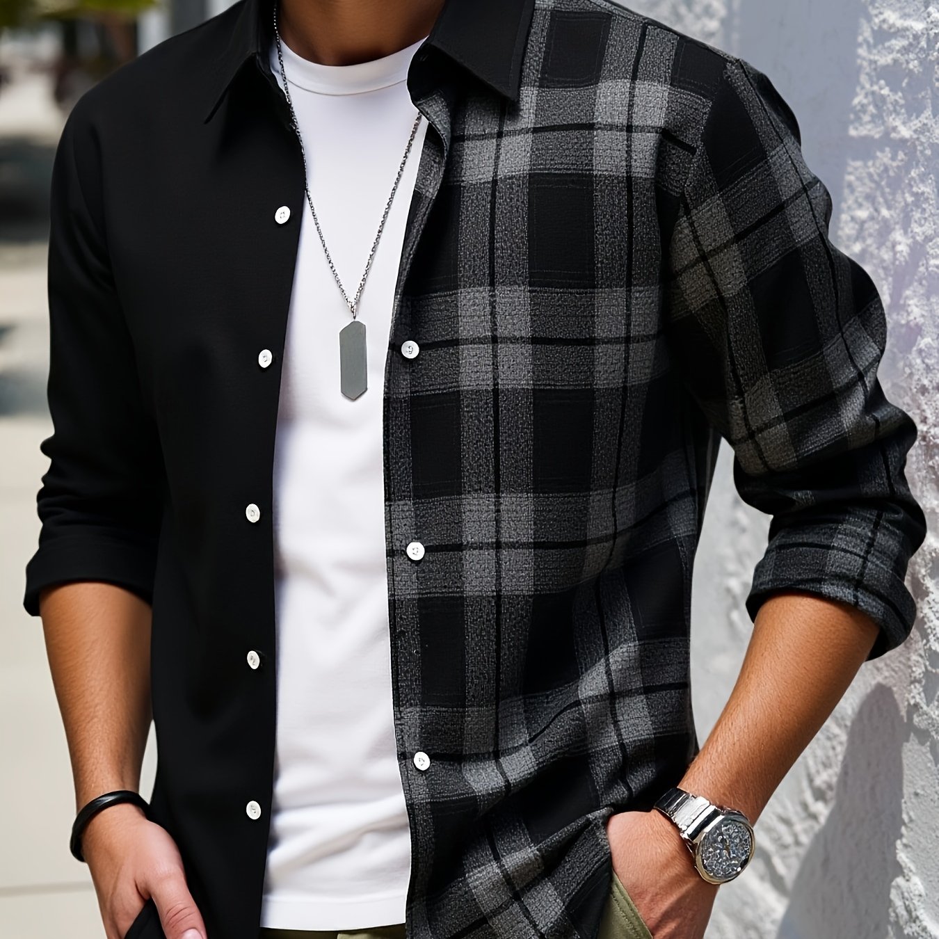 TEMU 남성용 롱슬리브 버튼셔츠, 더블 헴, 올드 머니 스타일 비즈니스 캐주얼, 정장 셔츠, 가을과 봄 남성용 셔츠