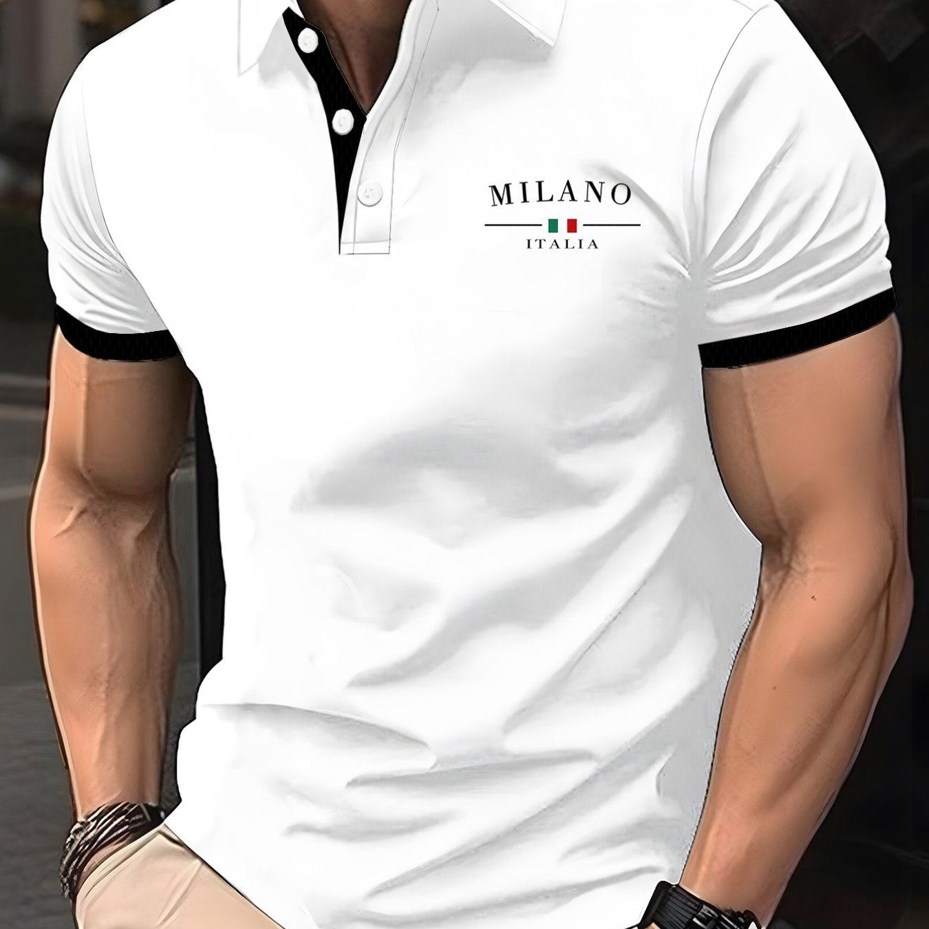 TEMU 남성용 우아한 대조 컬러 트림 반팔 셔츠