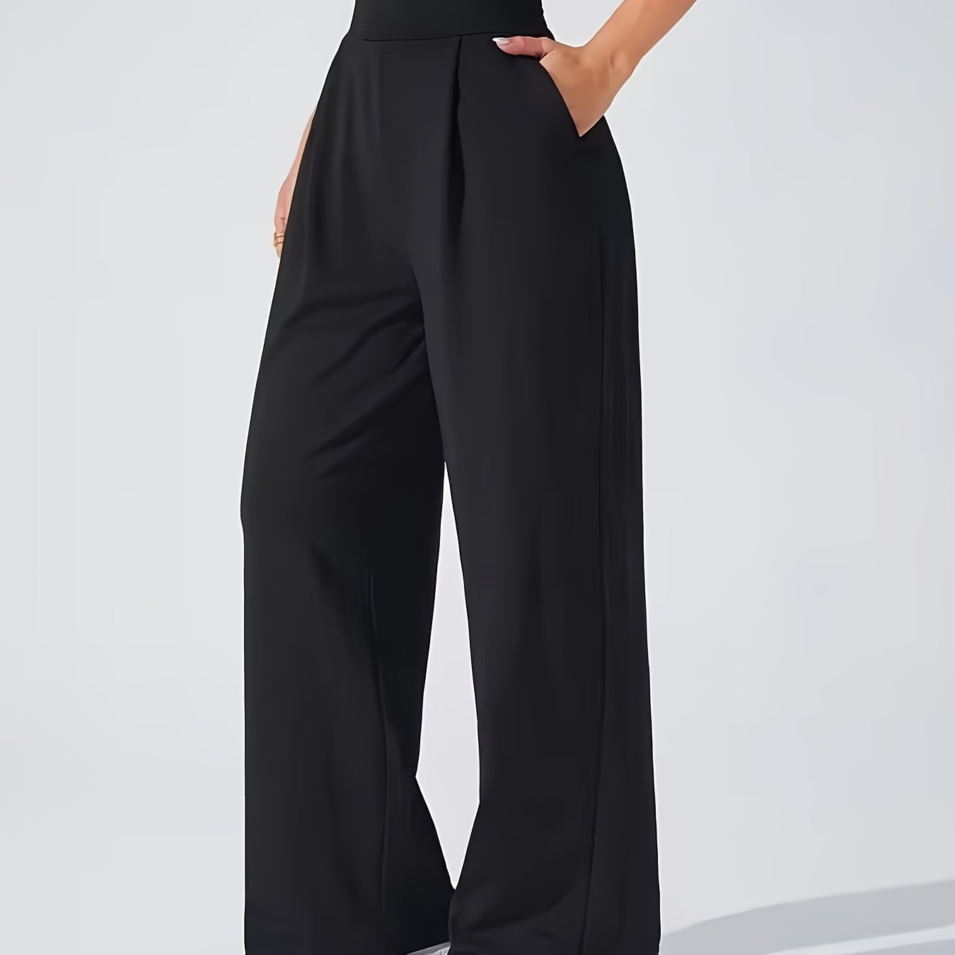 TEMU 여성용 심플 캐주얼 패션 하이웨이스트 텍스처 와이드 레그 팬츠