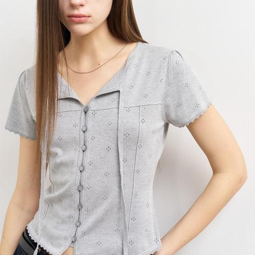 Destijl HC34 앞판펀칭레이스 밑단스트링 짧은 남방셔츠 블라우스 D2533bl10