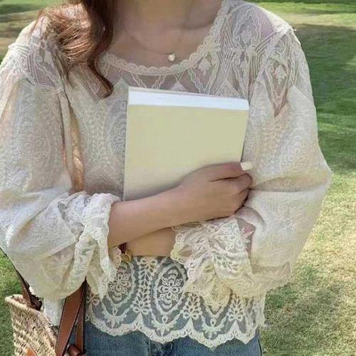 [오너클랜]인기상품 여성용 긴팔 펀칭 레이스 블라우스 데일리룩 티셔츠 [WFLLN5E_260305]