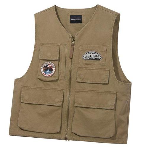 JEEP SPIRIT 봄 가을 남성용 야외 조끼 통기성 스포츠 다중 포켓 작업복 조끼