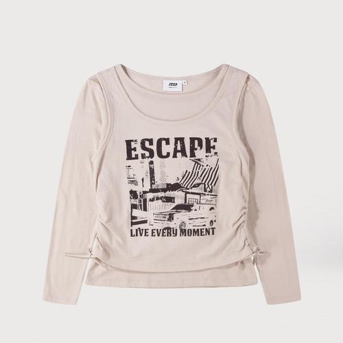 [지프]JR2TSF017 베이지 여성전용 이스케이프 레이어드 슬리브리스 티셔츠 세트_SC