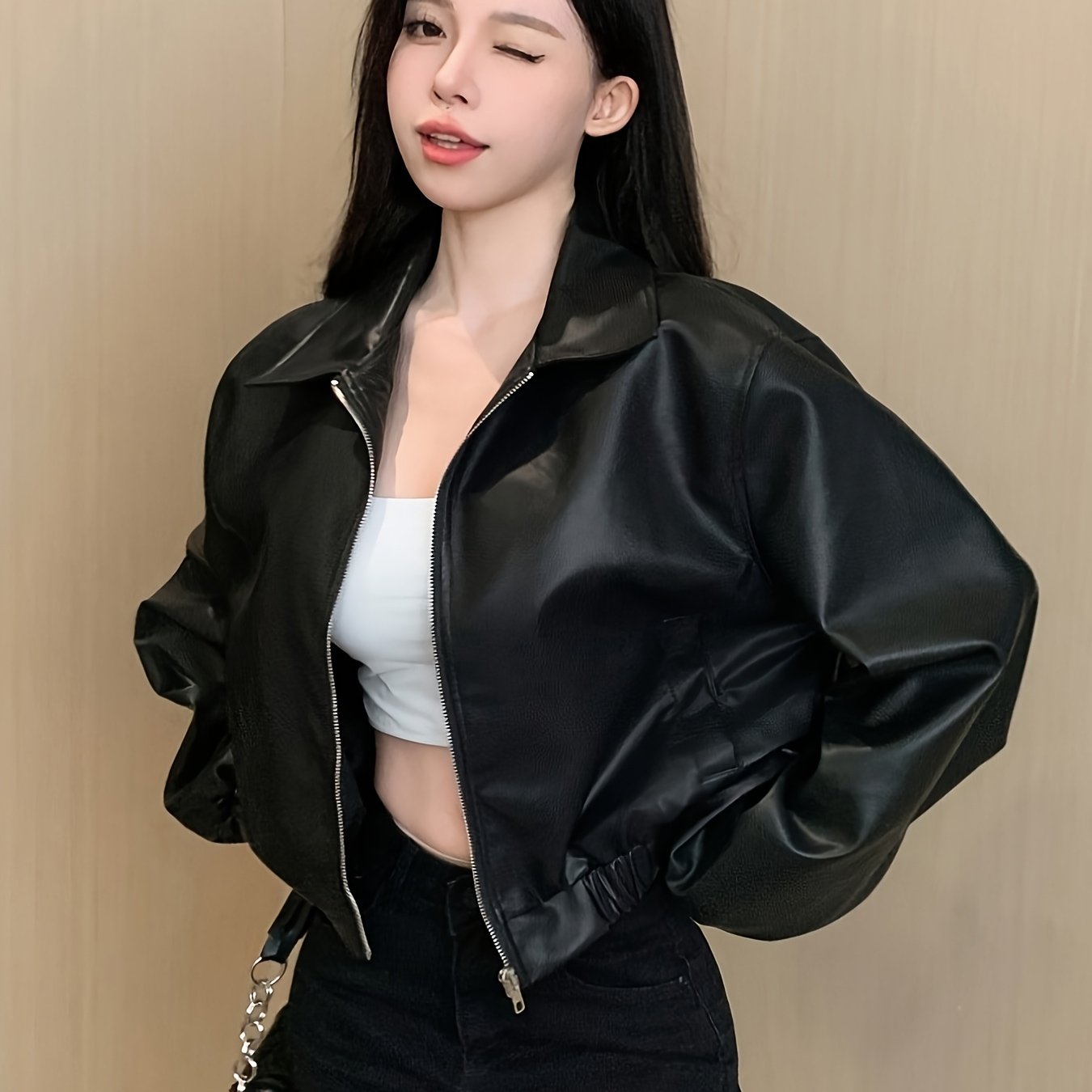 TEMU 스트리트 캐주얼 모터사이클 자켓, 여성용 사계절 스타일 PU 가죽 코트, 여성용 스탠드업 칼라 지퍼 긴팔 아우터웨어, PU 가죽 패션 PU 가죽 자켓, 사계절 착용 가능, 여성 의류