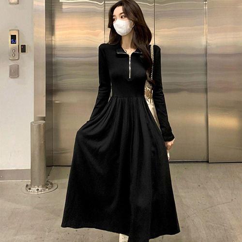 올블랙 반집업 A라인 롱 원피스 WFKIGIX
