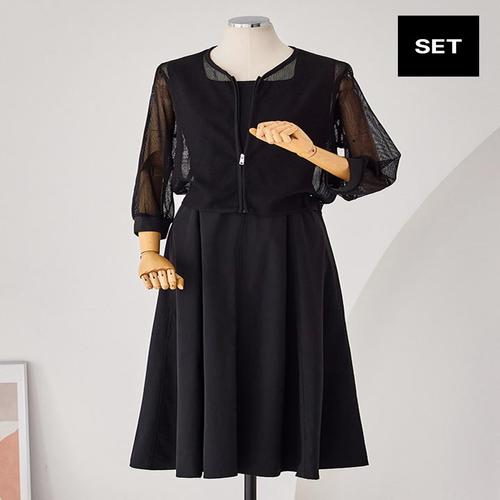 [커스텀에이블]메쉬 집업 점퍼 원피스 2종세트_T2604SE013B