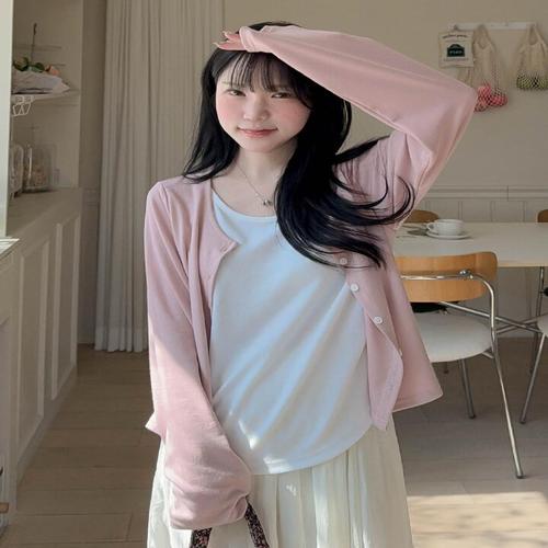 [다잇템]여자 썸머 데일리 무지 쫀쫀 골지 반팔 가디건