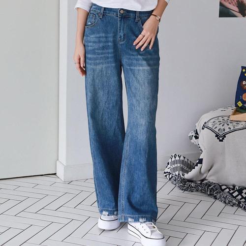 여성 밑단 포인트 찢청바지 멋스러운 일자 데님팬츠 WFK5KYU