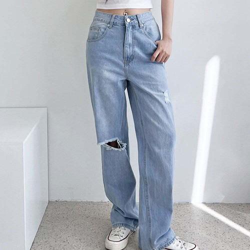 [신상오픈런]여성 뒷밴딩 찢청 와이드핏 워싱 데일리 청바지